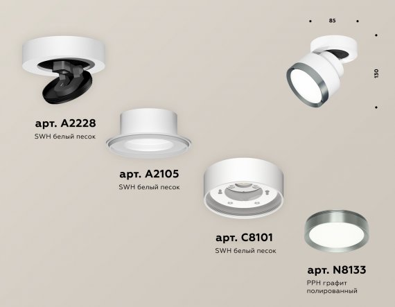 Комплект накладного поворотного светильника XM8101006 SWH/PPH белый песок/графит полированный GX53 (A2228, A2105, C8101, N8133)