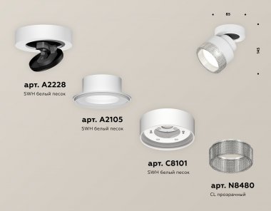 Комплект накладного поворотного светильника с композитным хрусталем XM8101040 SWH/CL белый песок/прозрачный GX53 (A2228, A2105, C8101, N8480)