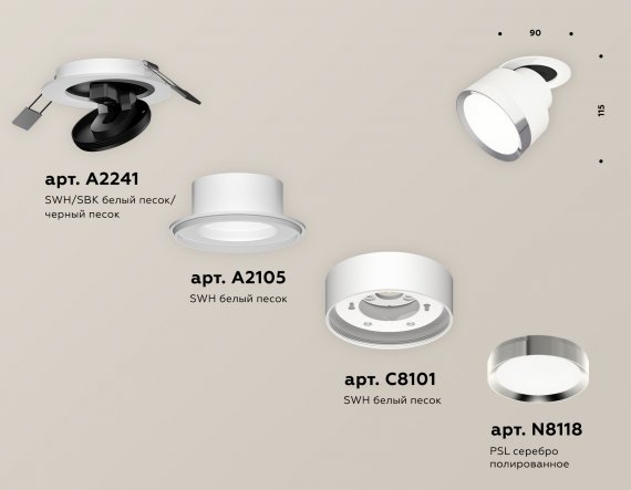 Комплект встраиваемого поворотного светильника XM8101502 SWH/PSL белый песок/серебро полированное GX53 (A2241, A2105, C8101, N8118)