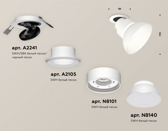 Комплект встраиваемого поворотного светильника XM8101600 SWH/FR белый песок/белый матовый GX53 (A2241, A2105, C8101, N8140)