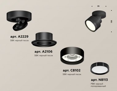 Комплект накладного поворотного светильника XM8102002 SBK/PBK черный песок/черный полированный GX53 (A2229, A2106, C8102, N8113)