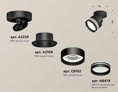 Комплект накладного поворотного светильника с акрилом XM8102026 SBK/FR черный песок/белый матовый GX53 (A2229, A2106, C8102, N8478)