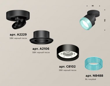 Комплект накладного поворотного светильника с композитным хрусталем XM8102043 SBK/BL черный песок/голубой GX53 (A2229, A2106, C8102, N8488)