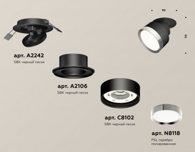 Комплект встраиваемого поворотного светильника XM8102501 SBK/PSL черный песок/серебро полированное GX53 (A2242, A2106, C8102, N8118)