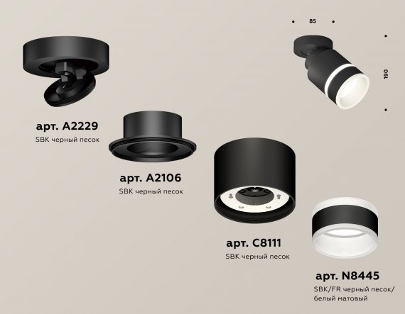Комплект накладного поворотного светильника с акрилом XM8111004 SBK/FR черный песок/белый матовый GX53 (A2229, A2106, C8111, N8445)