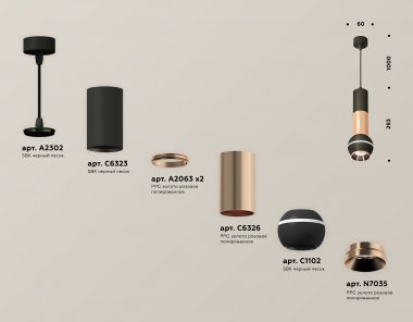 Комплект подвесного светильника с дополнительной подсветкой XP1102040 SBK/PPG черный песок/золото розовое полированное MR16 GU5.3 LED 3W 4200K (A2302, C6323, A2063, C6326, A2063, C1102, N7035)