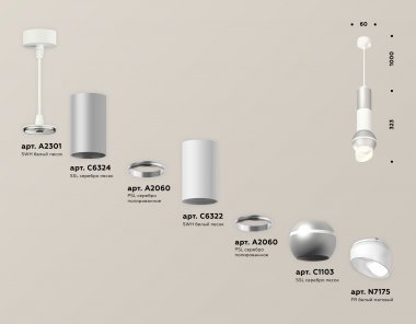 Комплект подвесного светильника с дополнительной подсветкой XP1103010 SSL/SWH/FR серебро песок/белый песок/белый матовый MR16 GU5.3 LED 3W 4200K (A2301, C6324, A2060, C6322, A2060, C1103, N7175)