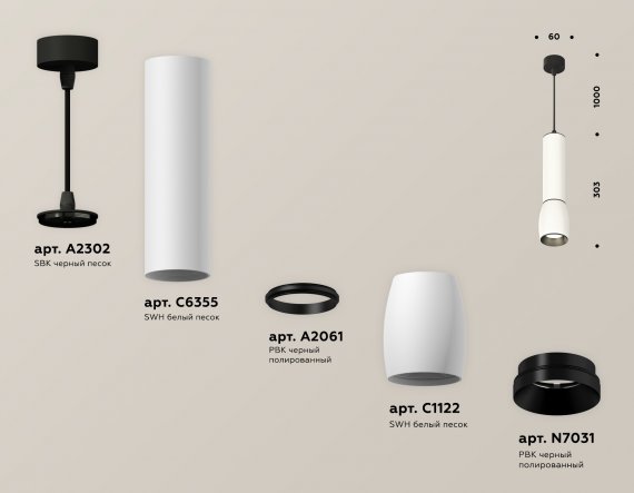 Комплект подвесного светильника XP1122010 SWH/PBK/SBK белый песок/черный полированный/черный песок MR16 GU5.3 (A2302, C6355, A2061, C1122, N7031)