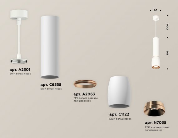 Комплект подвесного светильника XP1122040 SWH/PPG белый песок/золото розовое полированное MR16 GU5.3 (A2301, C6355, A2063, C1122, N7035)