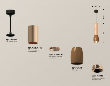 Комплект подвесного светильника XP1124001 SCF/PPG/SBK кофе песок/золото розовое полированное/черный песок MR16 GU5.3 (A2302, C6326, A2063, C6326, A2063, C1124, N7035)