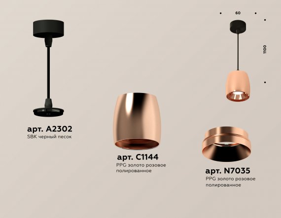 Комплект подвесного светильника XP1144001 PPG/SBK золото розовое полированное/черный песок (A2302, C1144, N7035)