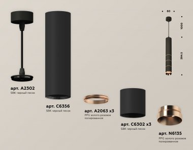 Комплект подвесного светильника XP6302060 SBK/PPG черный песок/золото розовое полированное MR16 GU5.3 (A2302, C6356, A2063, C6302, A2063, C6302, A2063, C6302, N6135)