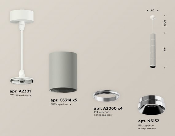 Комплект подвесного светильника XP6314001 SGR/SWH/PSL серый песок/белый песок/серебро полированное MR16 GU5.3 (A2301, C6314, A2060, C6314, A2060, C6314, A2060, C6314, A2060, C6314, N6132)