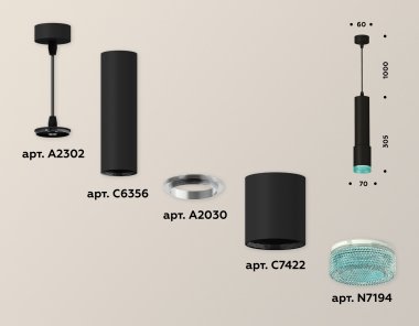 Комплект подвесного светильника XP7422004 SBK/BL черный песок/голубой MR16 GU5.3 (A2302, C6356, A2030, C7422, N7194)