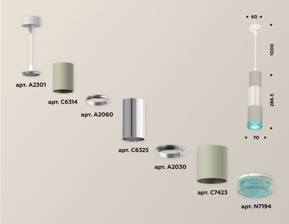 Ambrella XP7423002 Комплект подвесного светильника SGR/PSL/BL