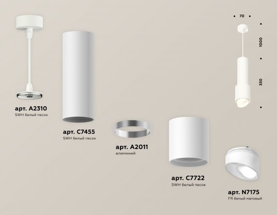 Комплект подвесного светильника с акрилом XP7722011 SWH/FR белый песок/белый матовый MR16 GU5.3 (A2310, C7455, A2011, C7722, N7175)