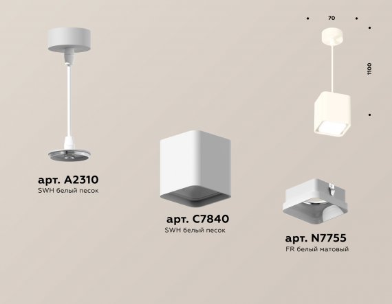 Комплект подвесного светильника с акрилом XP7840001 SWH/FR белый песок/белый матовый MR16 GU5.3 (A2310, C7840, N7755)