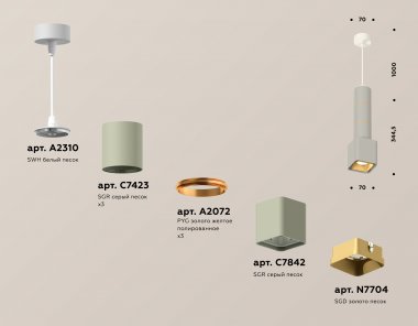 Комплект подвесного светильника XP7842010 SGR/SWH/SGD серый песок/белый песок/золото песок MR16 GU5.3 (A2310, C7423, A2072, C7423, A2072, C7423, A2072, C7842, N7704)