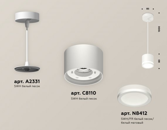 Комплект подвесного светильника GX53 с акрилом XP8110020 SWH/FR белый песок/белый матовый GX53 (A2331, C8110, N8412)