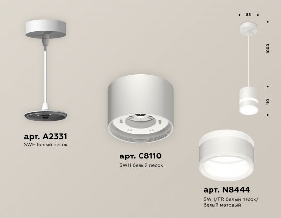 Комплект подвесного светильника GX53 с акрилом XP8110022 SWH/FR белый песок/белый матовый GX53 (A2331, C8110, N8444)