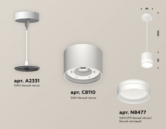 Комплект подвесного светильника GX53 с акрилом XP8110024 SWH/FR белый песок/белый матовый GX53 (A2331, C8110, N8477)