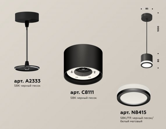 Комплект подвесного светильника GX53 с акрилом XP8111020 SBK/FR черный песок/белый матовый GX53 (A2333, C8111, N8415)