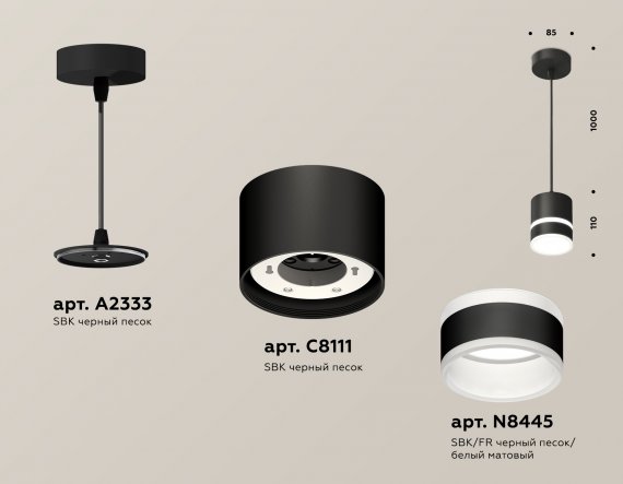 Комплект подвесного светильника GX53 с акрилом XP8111022 SBK/FR черный песок/белый матовый GX53 (A2333, C8111, N8445)
