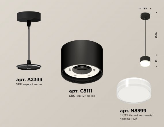 Комплект подвесного светильника с акрилом XP8111025 SBK/FR/CL черный песок/белый матовый/прозрачный GX53 (A2333, С8111, N8399)