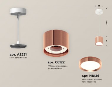 Комплект подвесного светильника GX53 XP8122012 PPG/SWH золото розовое полированное/белый песок GX53 (A2331, C8122, N8126)