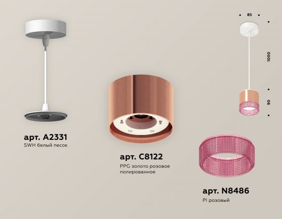 Комплект подвесного светильника GX53 с композитным хрусталем XP8122031 PPG/PI/SWH золото розовое полированное/розовый/белый песок GX53 (A2331, C8122, N8486)