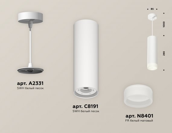 Комплект подвесного светильника с акрилом XP8191002 SWH/FR белый песок/белый матовый GX53 (A2331, C8191, N8401)
