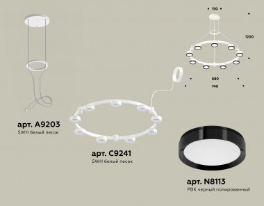 Комплект подвесного светильника XR92031801/9 SWH/PBK белый песок/черный полированный GX53 (A9203, C9241, N8113)