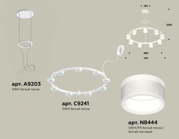 Комплект подвесного светильника с акрилом XR92031902/9 SWH/FR белый песок/белый матовый GX53 (A9203, C9241, N8444)