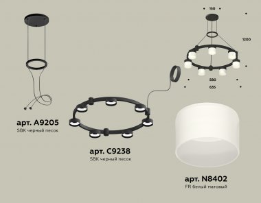 Комплект подвесного светильника с акрилом XR92051604/7 SBK/FR черный песок/белый матовый GX53 (A9205, C9238, N8402)
