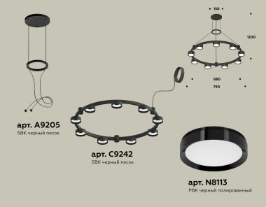 Комплект подвесного светильника XR92051800/9 SBK/PBK черный песок/черный полированный GX53 (A9205, C9242, N8113)