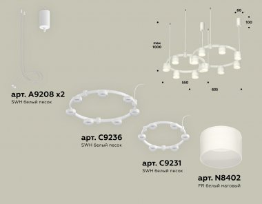 Комплект подвесного светильника с акрилом XR92081002/13 SWH/FR белый песок/белый матовый GX53 (A9208, C9236, C9231, N8402)