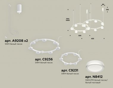Комплект подвесного светильника с акрилом XR92081004/13 SWH/FR белый песок/белый матовый GX53 (A9208, C9236, C9231, N8412)