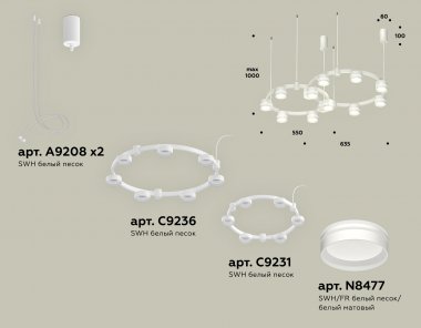 Комплект подвесного светильника с акрилом XR92081005/13 SWH/FR белый песок/белый матовый GX53 (A9208, C9236, C9231, N8477)