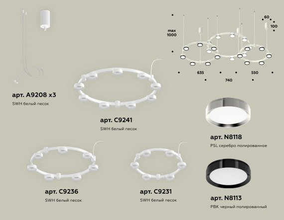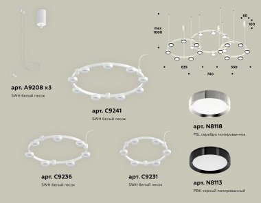 Комплект подвесного светильника XR92082100/22 SWH/PBK/PSL белый песок/черный полированный/серебро полированное GX53 (A9208, C9241, C9236, C9231, N8113, N8118)