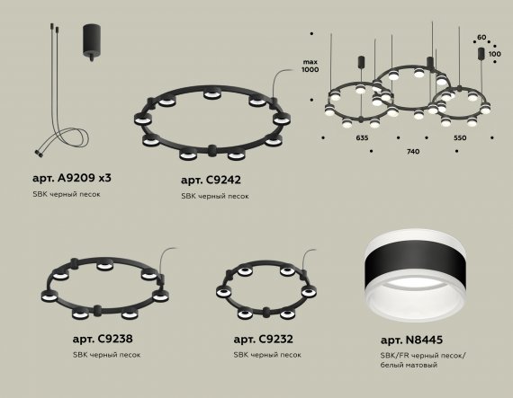 Комплект подвесного светильника с акрилом XR92092220/22 SBK/FR черный песок/белый матовый GX53 (A9209, C9242, C9238, C9232, N8445)