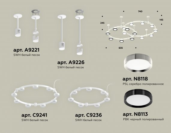 Комплект подвесного светильника XR92211150/16 SWH/PSL/PBK белый песок/серебро полированное/черный полированный GX53 (A9221, A9226, C9241, C9236, N8118, N8113)