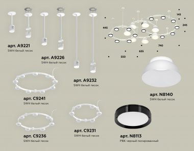 Комплект подвесного светильника с акрилом XR92212010/22 SWH/PBK/FR белый песок/черный полированный/белый матовый GX53 (A9221, A9226, A9232, C9241, C9236, C9231, N8113, N8140)