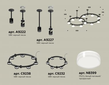 Комплект подвесного светильника с акрилом XR92221006/13 SBK/FR/CL черный песок/белый матовый/прозрачный GX53 (A9222, A9227, C9238, C9232, N8399)