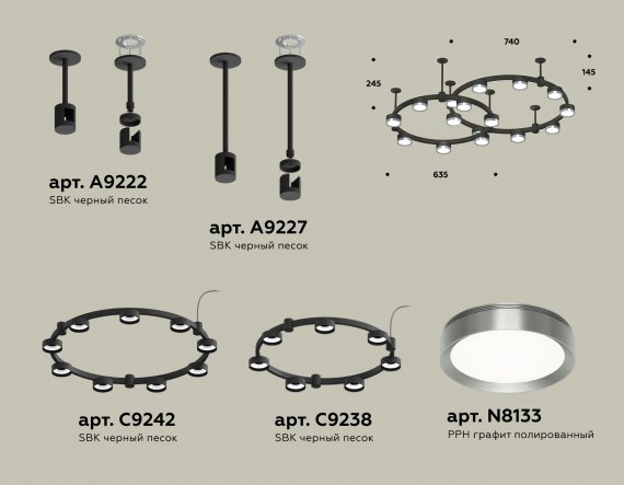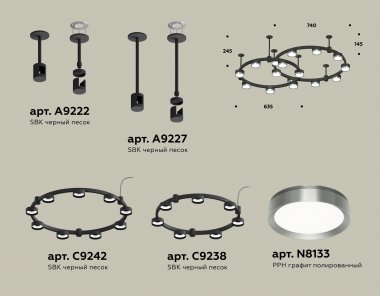 Комплект подвесного светильника XR92221160/16 SBK/PPH черный песок/графит полированный GX53 (A9222, A9227, C9242, C9238, N8133)