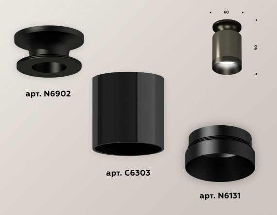 Комплект накладного светильника XS6303081 DCH/PBK черный хром/черный полированный MR16 GU5.3 (N6902, C6303, N6131)