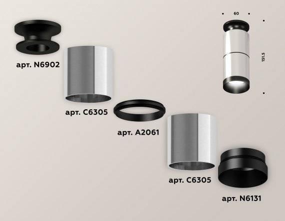 Комплект накладного светильника XS6305080 PSL/PBK серебро полированное/черный полированный MR16 GU5.3 (N6902, C6305, A2061, N6131)