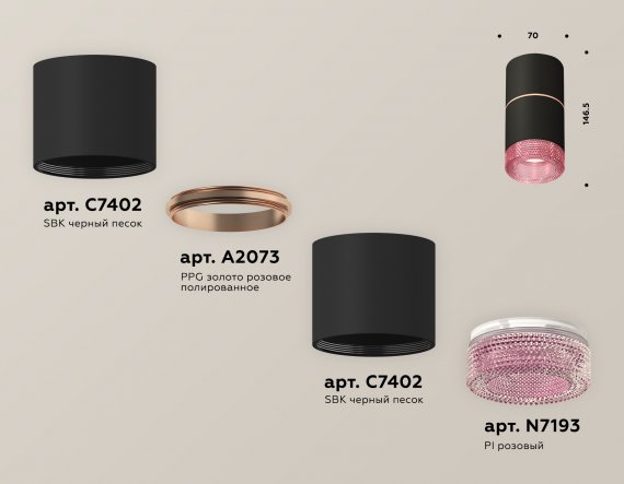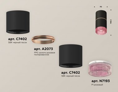Комплект накладного светильника с композитным хрусталем XS7402202 SBK/PI черный песок/розовый MR16 GU5.3 (C7402, A2073, C7402, N7193)