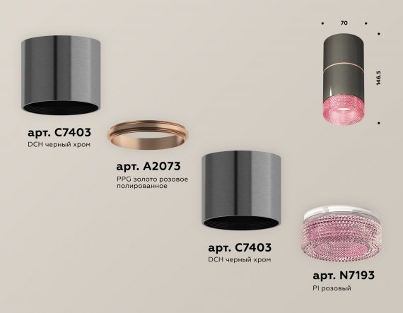 Комплект накладного светильника с композитным хрусталем XS7403102 DCH/PI черный хром/розовый MR16 GU5.3 (C7403, A2073, C7403, N7193)