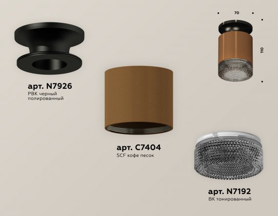 Комплект накладного светильника с композитным хрусталем XS7404102 SCF/BK кофе песок/тонированный MR16 GU5.3 (N7926, C7404, N7192)