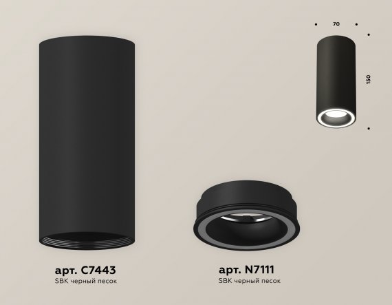 Комплект накладного светильника с акрилом XS7443011 SBK черный песок MR16 GU5.3 (C7443, N7111)